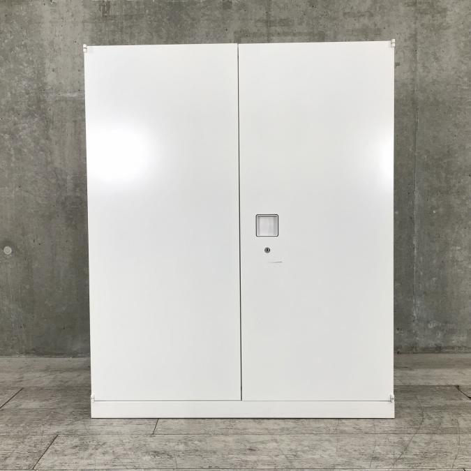 定番サイズ オカムラ/レクトラインシリーズ カラー:ネオホワイト 両開き書庫 鍵付き シリンダー錠 天板無し