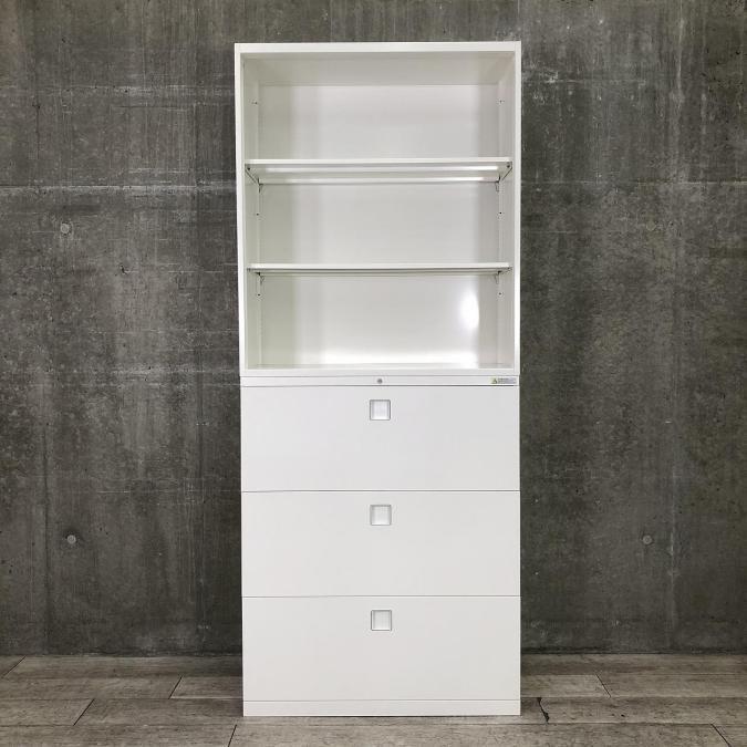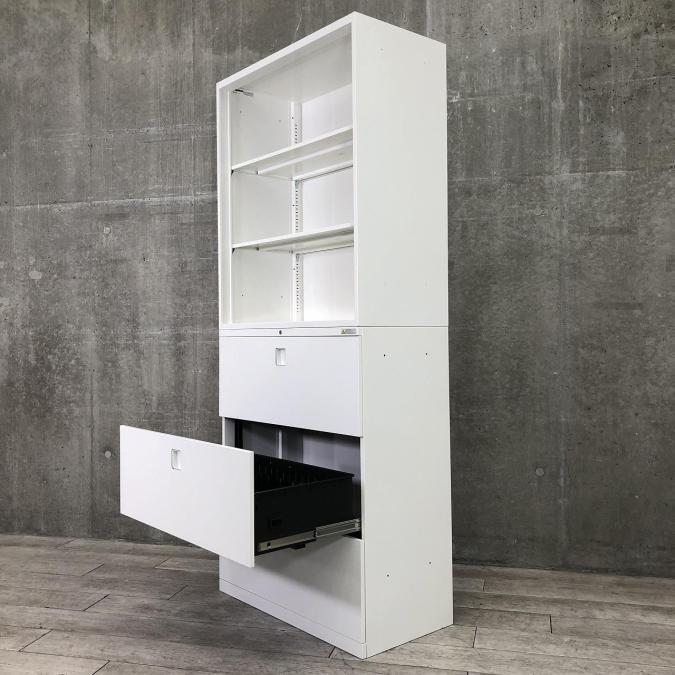 使い勝手抜群の上下書庫セット!上段オープン+下段3段ラテラル仕様! ■オカムラ/レクトライン/ホワイト