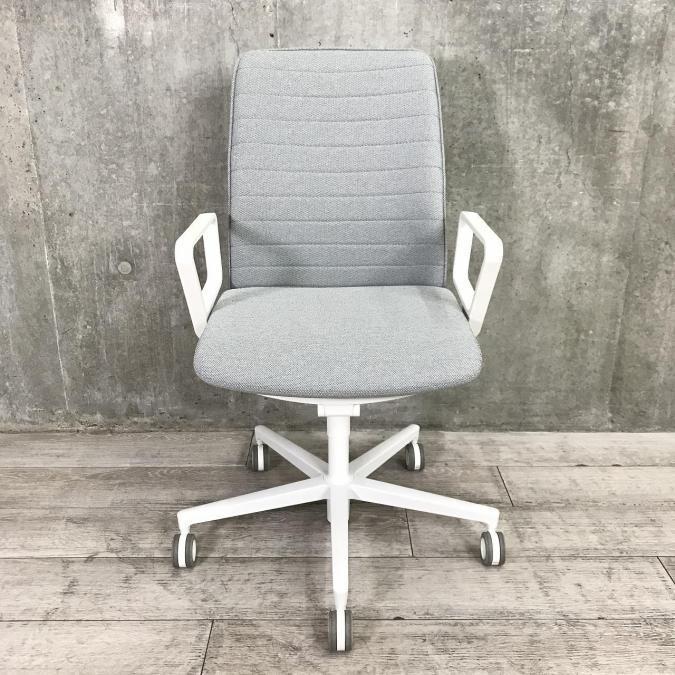 【コクヨの最新チェア!】姿勢をサポートする機能性と、空間に溶け込む柔らかなデザイン ■コクヨ FABRE(ファブレ)ファブリック ストライプタイプ ■ローバック 固定肘付き ■ライトグレー【オフィスにもご自宅用にも】- 足立・葛飾店