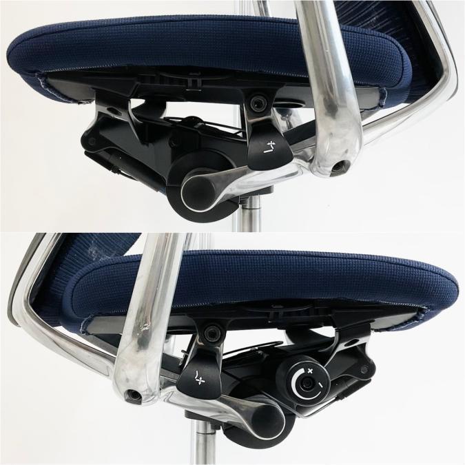 もちろん座り心地もコンテッサの直系ですから快適です。座面の素材はクッションとメッシュの2タイプあります。私、個人的には座面の中心部分でも外側でもテンションが変わらないクッション素材が、足を閉じても開いても快適なので推しです!"