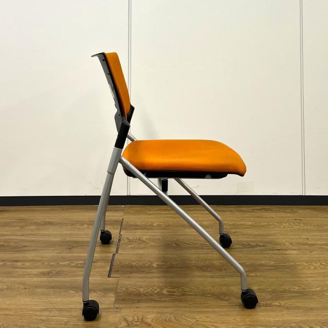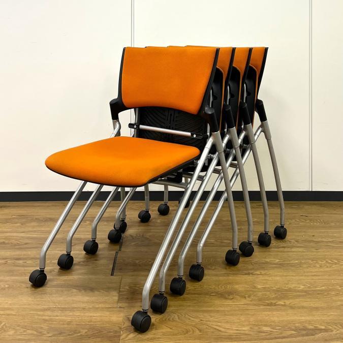 【定価約6万円】【重ねて収納可能!スペースの削減におすすめなネスティングチェア!】■イトーキ/マノス ■ネスティングチェア ■オレンジ