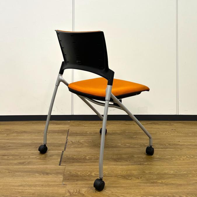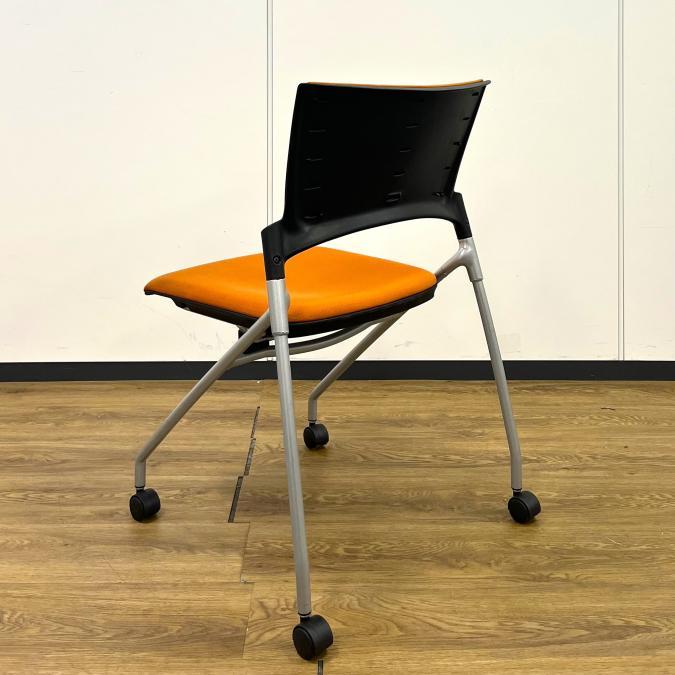 【人気のネスティングチェア!ミーティングスペースに最適!】■イトーキ(ITOKI) マノス(MANOSS) ネスティングチェア ミーティングチェア ■背パッドなし キャスター付き ■アンバーオレンジ×背面ホワイト【入替セールにつき30%OFF!】