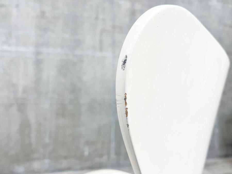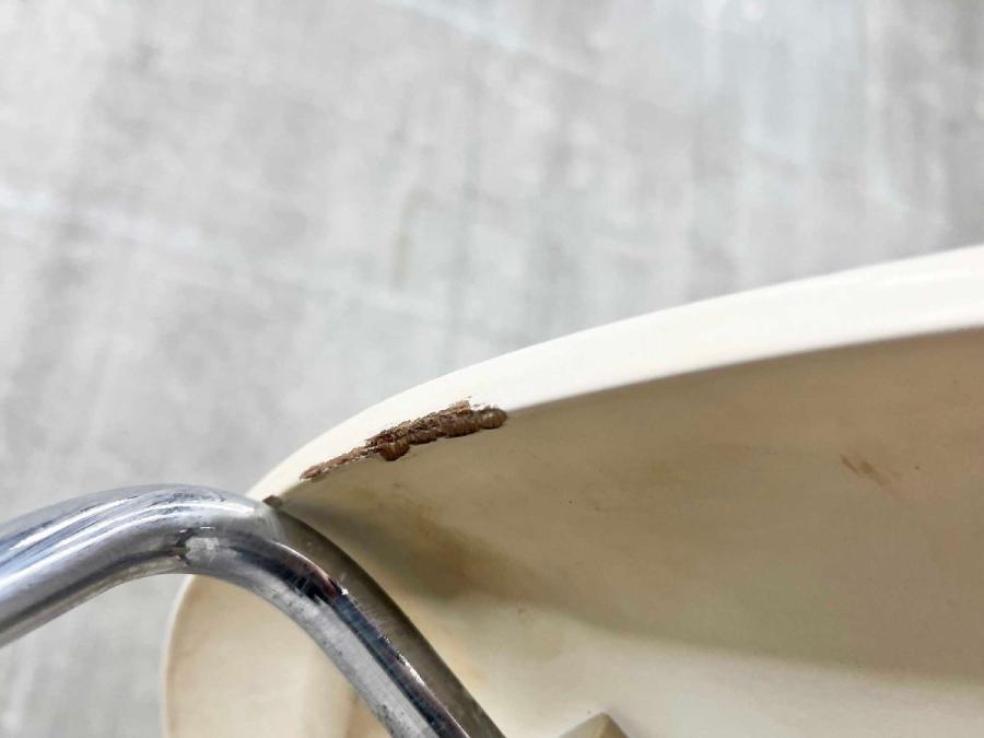- かなり強い濃い黄ばみ・変色が商品全体にある。(例、座面・背もたれ、脚部等にある。)