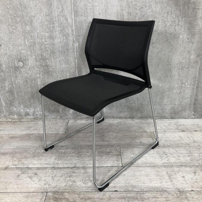 【メッシュ素材のミーティングチェア】■オカムラ(okamura) Zart(ツァルト)ミーティングチェア スタッキング ■ブラック ■メッシュ背座面 【重ねて省スペースに格納】- 在庫数