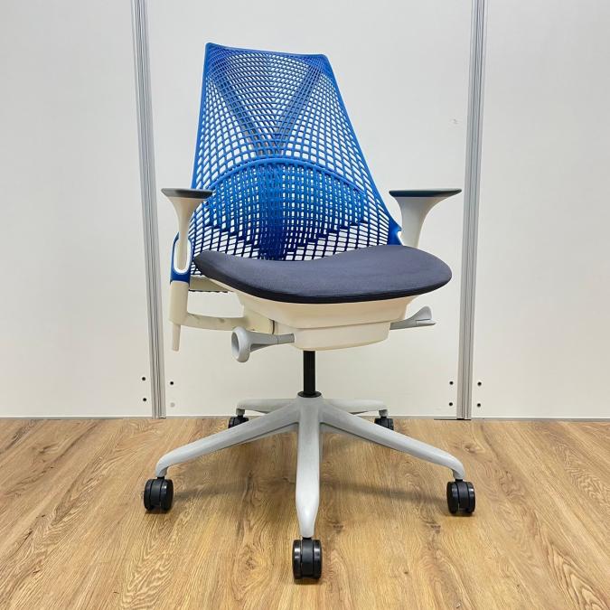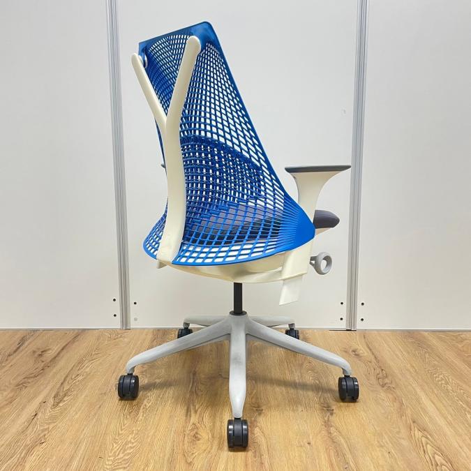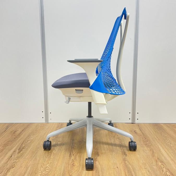 【デザイナース家具】ハーマンミラー製 セイルシリーズ 可動肘 前傾機能付き ブルーカラー 肘付きハイバックチェア!!※京都東寺店撮影※- 京都東寺店