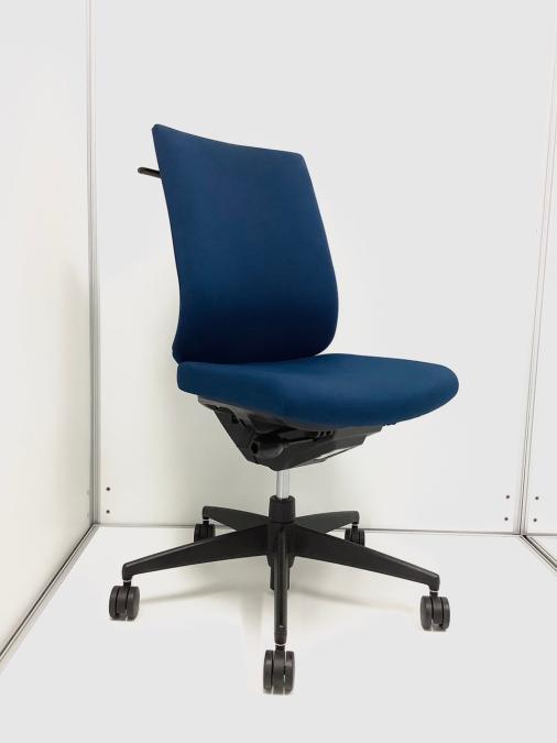 コクヨ ウィザード2 ローバック ロングセラーシリーズ プルシアンブルー×ブラックフレーム 肘無しモデル 定番の使いやすいチェア