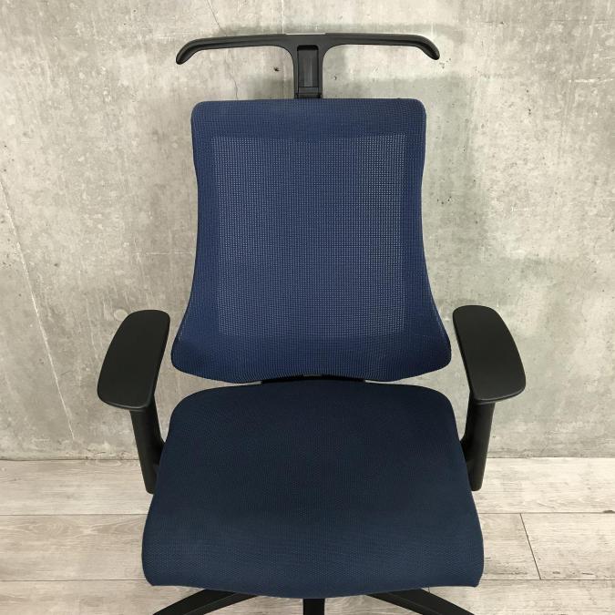 【姿勢の変化にフレキシブルに対応!スタイリッシュで座り心地も抜群な高機能チェア!】■イトーキ(ITOKI)製 エフ(f)チェア 肘付き ハイバック 背面メッシュ ■可動肘 ■ネイビーブルー ×ブラックシェル