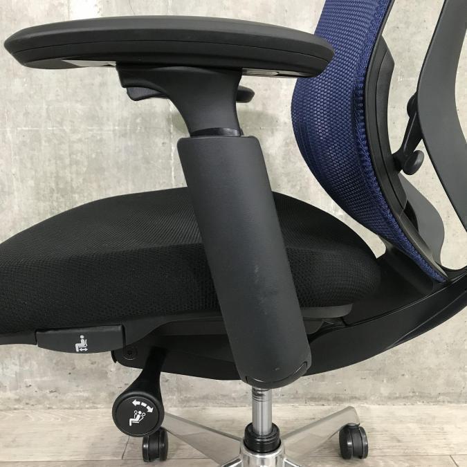 【新品ヘッドレスト交換済み】オカムラ/シルフィー/ブルー/可動肘