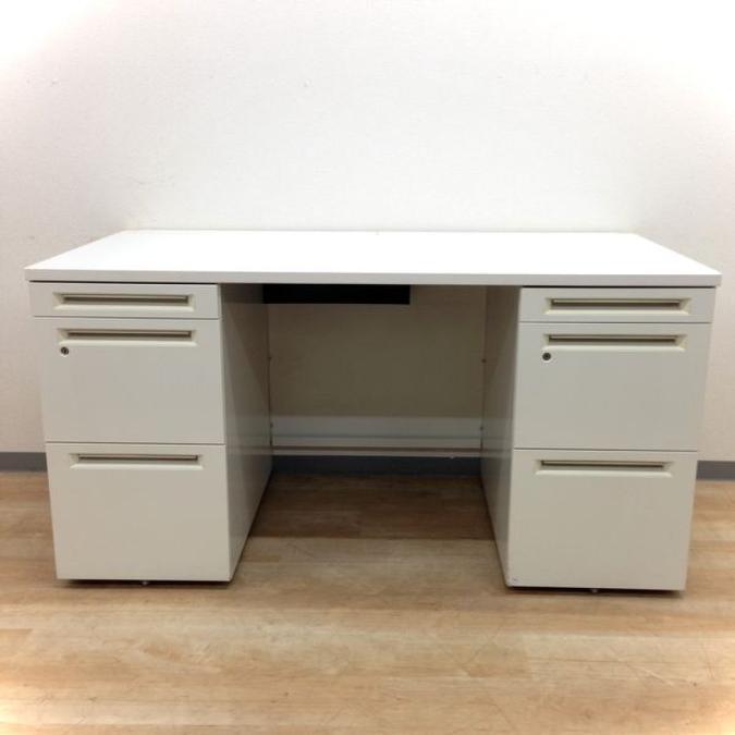 【在庫入替セール品】【ハイクオリティデスク入荷!】珍しいD600㎜!■オカムラ製 両袖デスク W1400mm ホワイト ■収納スペース充実!- なんば日本橋店
