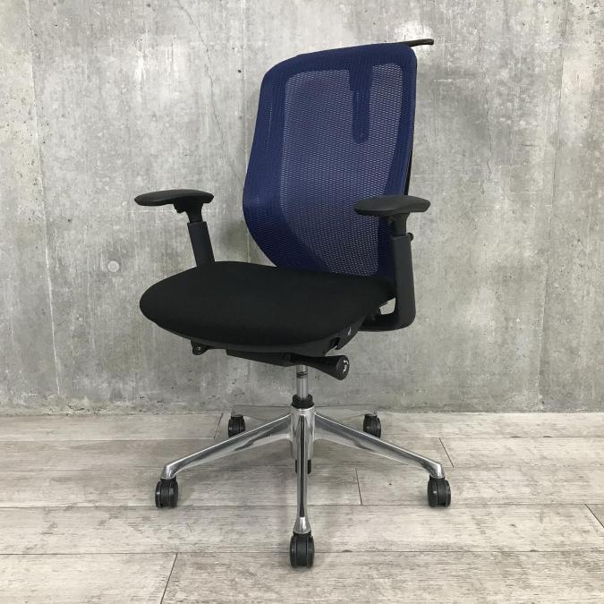 【新品ヘッドレスト交換済み】オカムラ/シルフィー/ブルー/可動肘