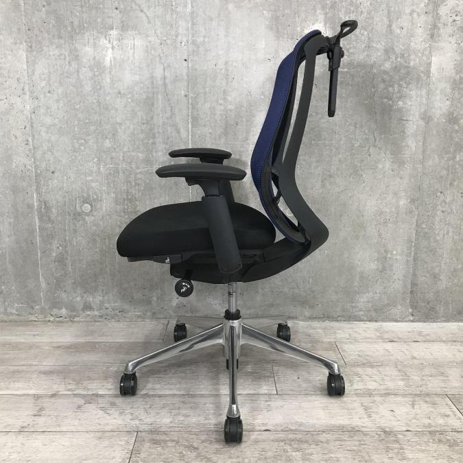【新品ヘッドレスト交換済み】オカムラ/シルフィー/ブルー/可動肘