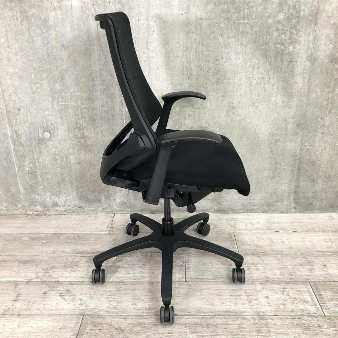 【在庫入替セール品!】【三次元フォルムが身体にしっかりフィット!】■イトーキ エフチェア 可動肘付 ブラック 背裏ストライプメッシュ ※座面に擦れ・ホツレがあるためお安く! 【ITOKI fチェア】