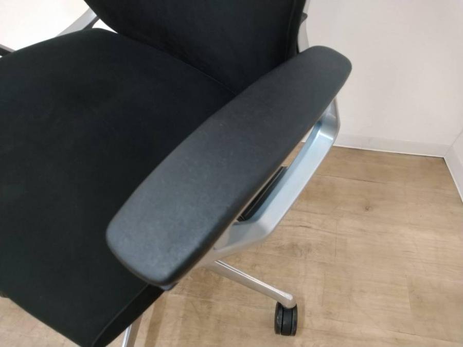 ※ひじ掛け部分に使用感ありのため、特価!【オカムラの最上級モデル!高級感と機能性を融合させたチェア!】■ハイバック 肘付き 背・座クロス張地(スエード調) 固定肘 ※サイド剥がれ有り ランバーサポート付き ブラック/オカムラ/デューク