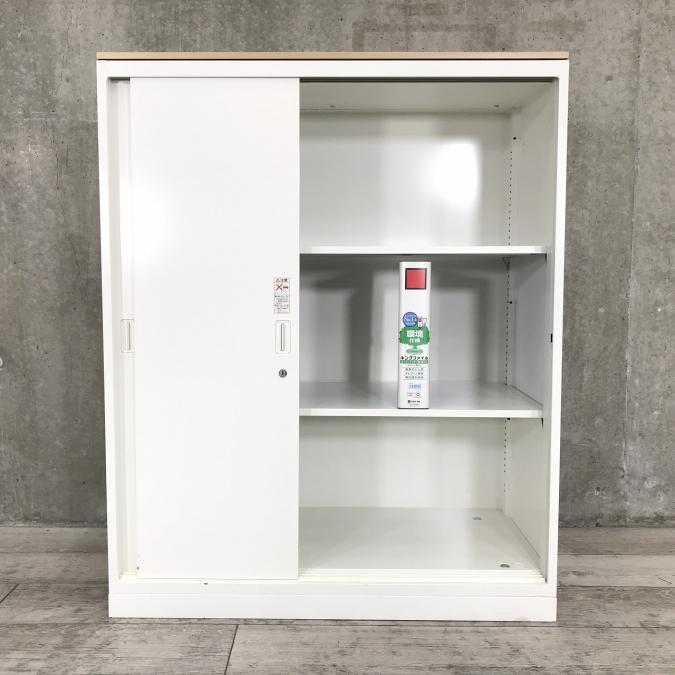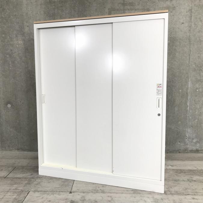 【ナチュラル天板つき】お問い合わせの多い引違い書庫が入荷!スライド引き戸だから開閉スペースに困りません!■オカムラ(okamura)製 レクトラインシリーズ 3枚引き戸タイプ 引違い書庫 ■シリンダー錠 ■ホワイト【弊社使用欄:A00940145】サーキュラーバリューCO2削減量の算出について