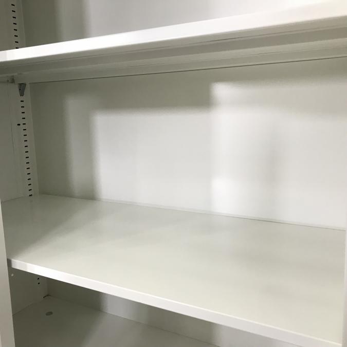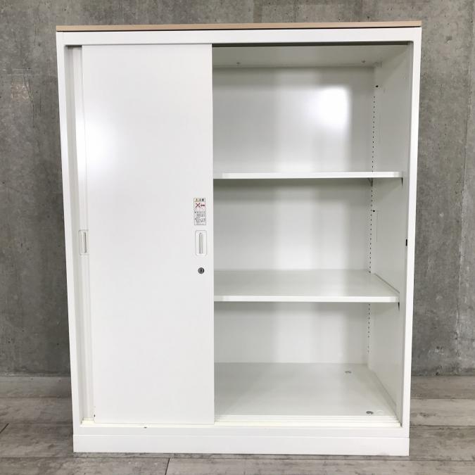 2枚引き戸書庫 オカムラ レクトライン 鍵付き シリンダー錠 ホワイト 天板無し スライド式の扉のため導線を邪魔しません
