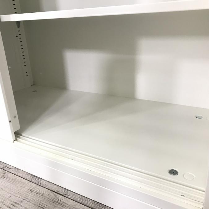 スライド式の扉のため導線を邪魔しません!使い勝手抜群の2枚引き違い書庫が入荷! ■オカムラ/レクトライン/ホワイト 2枚引き戸
