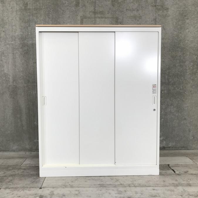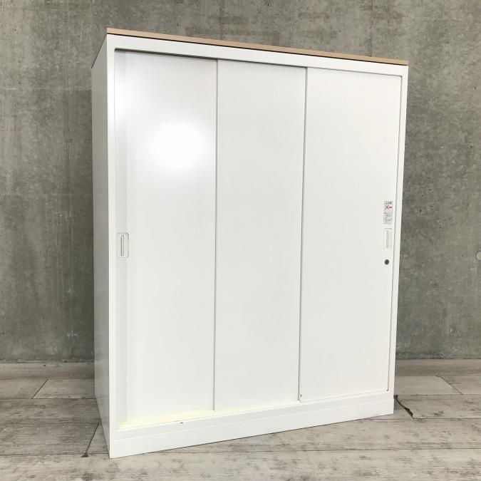 オカムラ製 人気レクトラインシリーズ ホワイト シリンダー W800xD450XH1050 3枚引戸 ※ベースなし 3枚引き違い書庫!!
