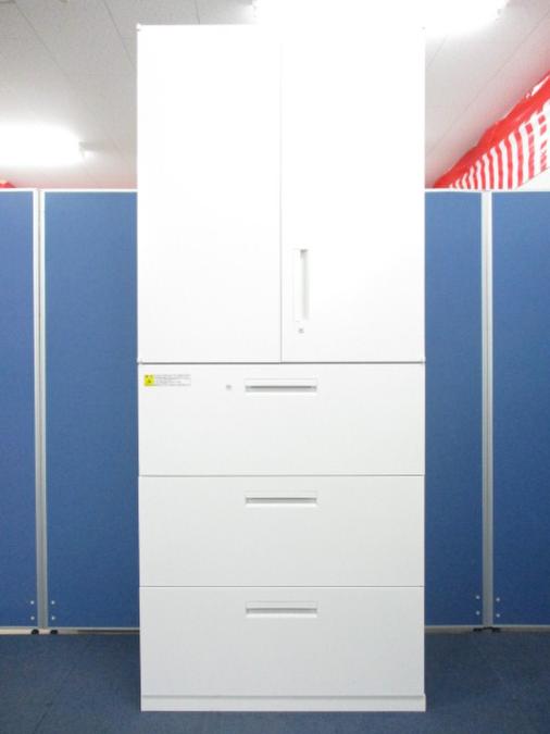 定番シリーズ!収納量抜群!観音開き+引き出しタイプのキャビネットセット! ■内田洋行/HS/ホワイト