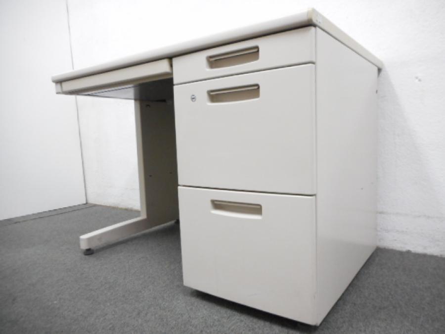【スタンダードなデザインで高品質・コンパクトなサイズ感!収納力を備えたキャビネット一体型の片袖スチールデスク 】■コクヨ(KOKUYO)製 BSシリーズ 片袖デスク W1000×D700mm ■ナチュラルグレー ※実物前面日焼け有り