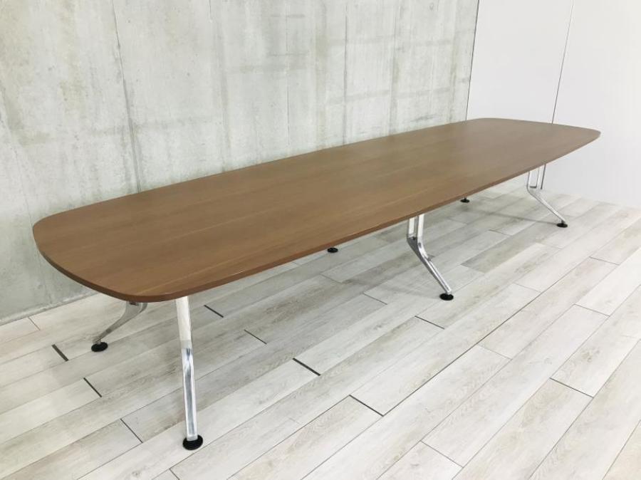 デザイン性抜群の高級大型テーブル!落ち着きのある木目ブラウンカラーに金属の脚がカッコイイ! ■内田洋行/MINDS(マインズ)/ダークファインウッド