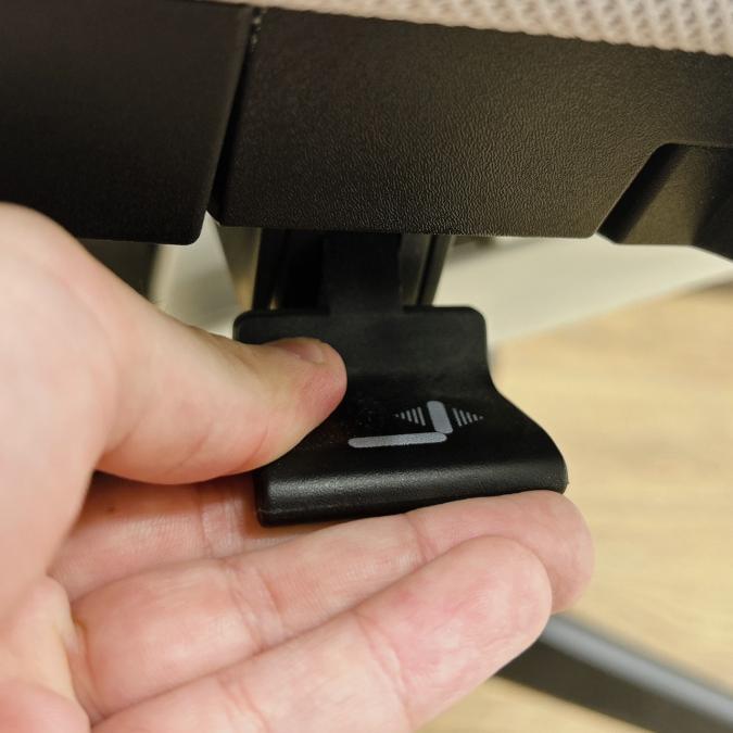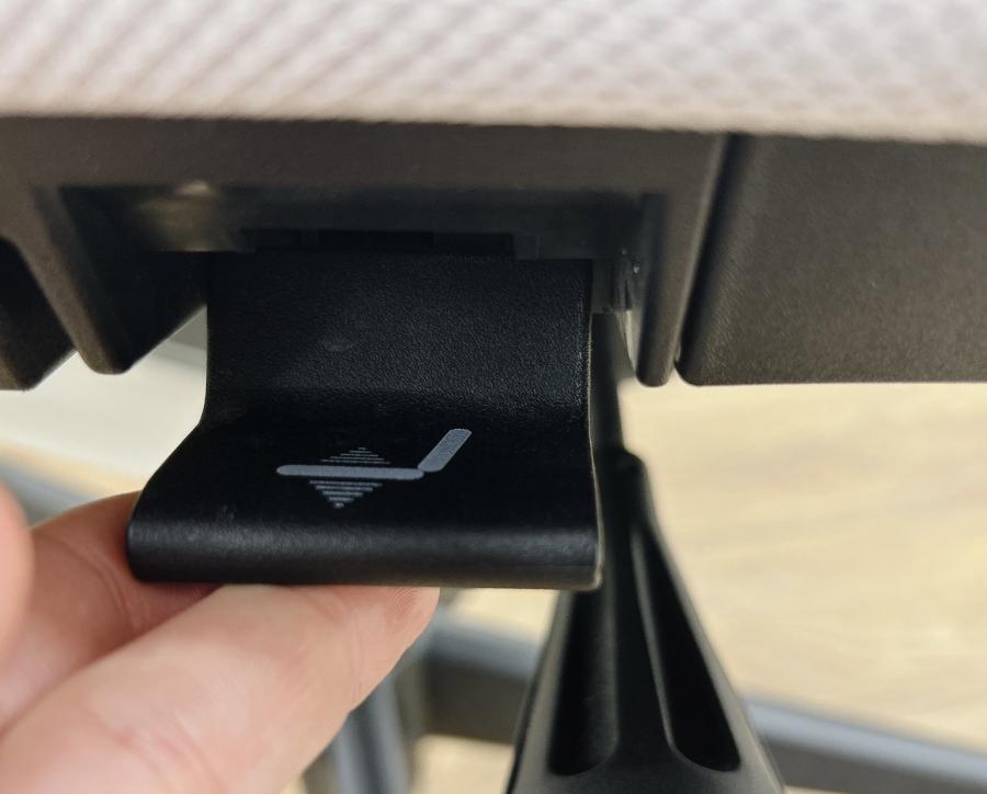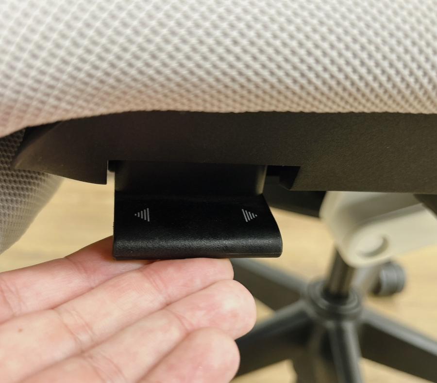 もちろん見た目だけでなく、オフィスでの使いやすさも考えられています。例えば、普通のチェアでは離着席時に背もたれを持つので、背もたれの上部が少しずつ汚れてきます。しかし、エルフィでは、背もたれのフレームに取っ手がついており、それを押し引きできるので、クッションやメッシュを汚すことなく綺麗な状態で長くお使いいただくことができます!