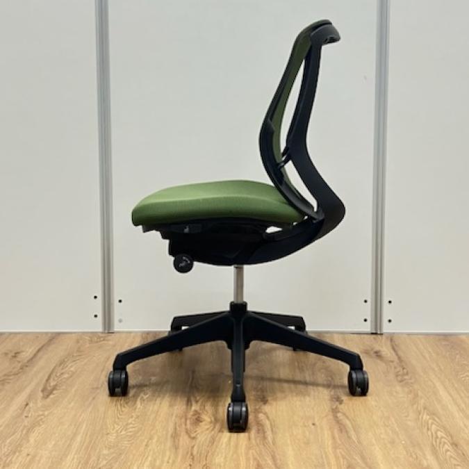 オカムラ製 シルフィーシリーズ 背メッシュ ダークグリーン ブラックフレーム 前傾姿勢 樹脂脚 肘無しローバックチェア!!サーキュラーバリューCO2削減量の算出について