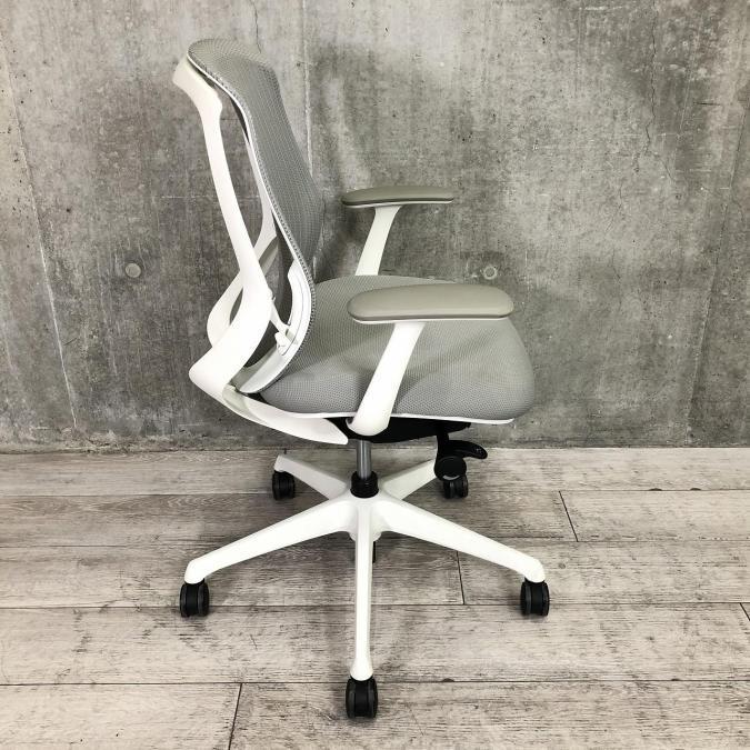 【前傾機能搭載チェア!】■オカムラ/シルフィー メッシュ/ライトグレー 【固定肘】 ローバック- 神戸・三宮店