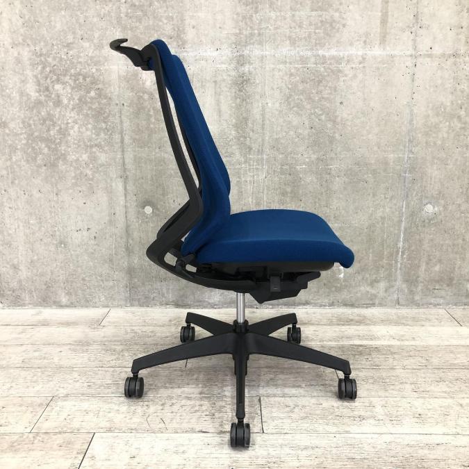 【在庫入替セール】コクヨ デュオラ 肘無しモデル クッションタイプ ブルー×ブラックフレームの定番のカラーリング コートハンガー付き ※背もたれに破れ有り【T9】