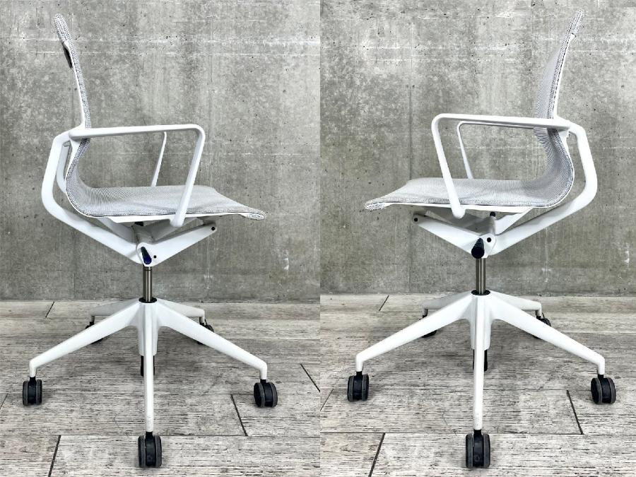 「美という要素はフォルムやシェイプに宿るのではなく、機能を加味した相互の関係性の中で見出されるもの」とのアルベルト・メダの言葉通り、機能もデザインも軽やかなオフィスチェアです