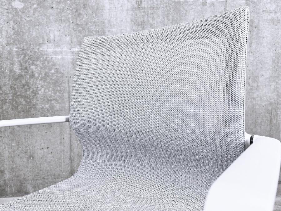 2本のサイドフレームの間に弾力性に富んだファブリックを張り、シートシェルを一体化したオフィスチェア。