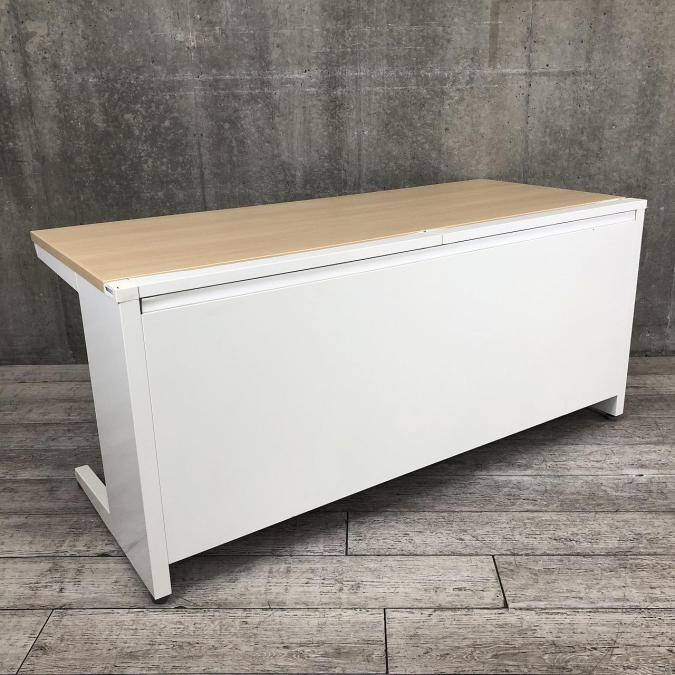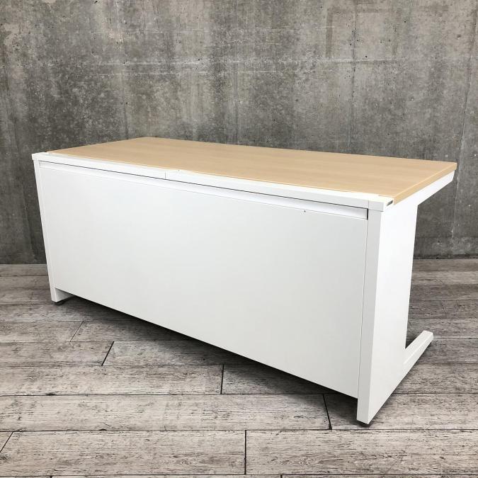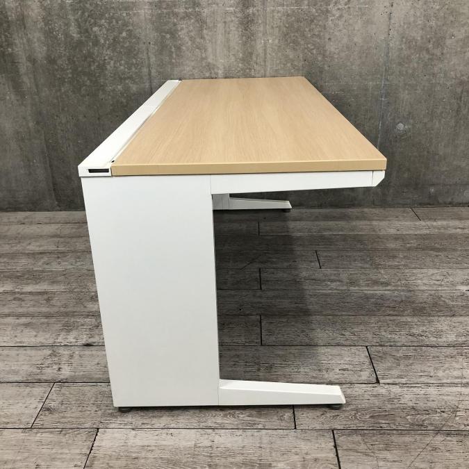 【希少品!】【広々としたワークスペースで使いやすい!】■オカムラ(okamura)製 アドバンスシリーズ 平デスク 引き出し付 ■W1600×D700×H720mm ■天板:ナチュラル木目柄/本体:ホワイト ■配線ダクト