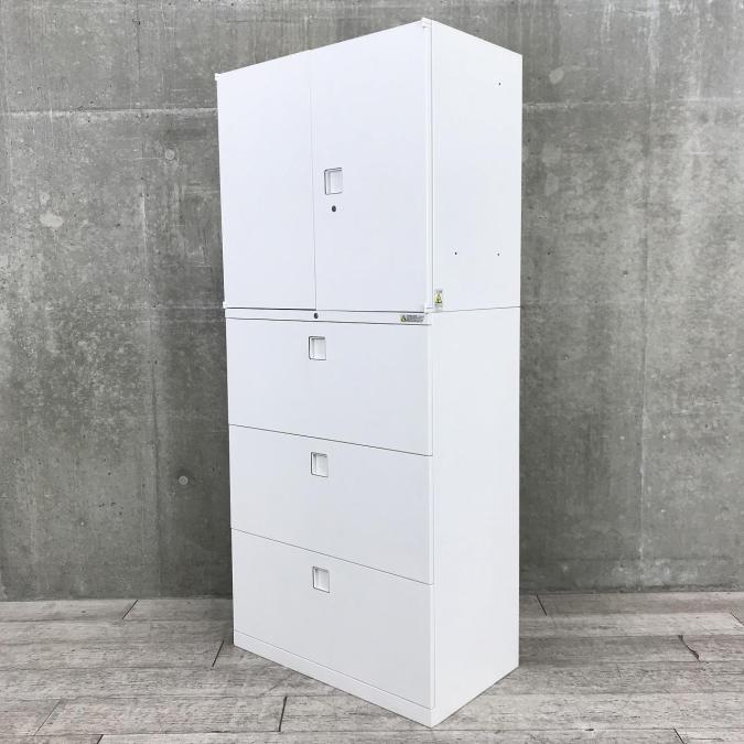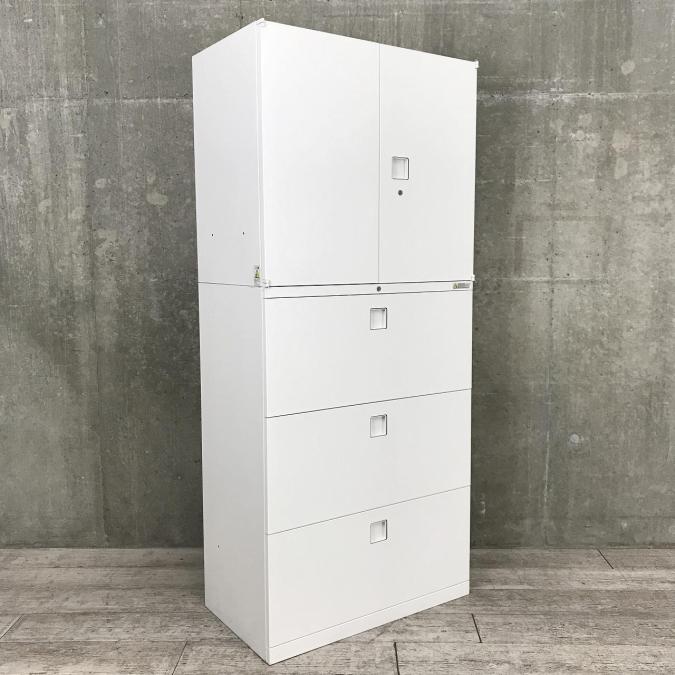 【オフィスの書類をスッキリ整理!大人気レクトラインの上下書庫セット!】■オカムラ(okamura)製 レクトラインシリーズ 両開き+3段ラテラル 書庫セット H2150㎜ ■シリンダー錠 ■ホワイト