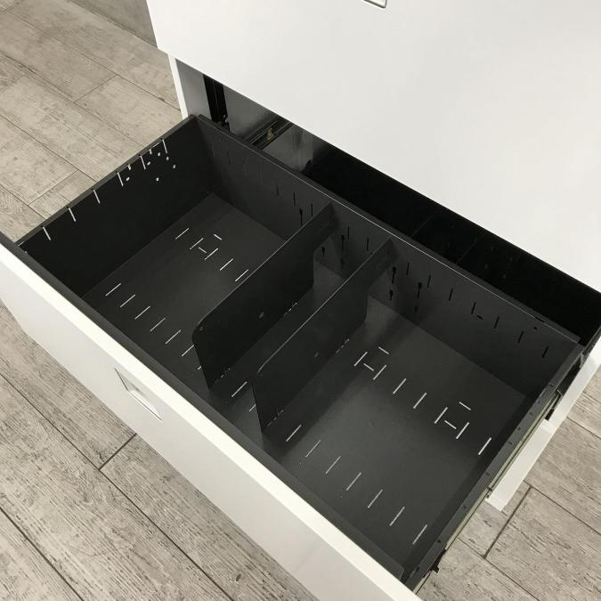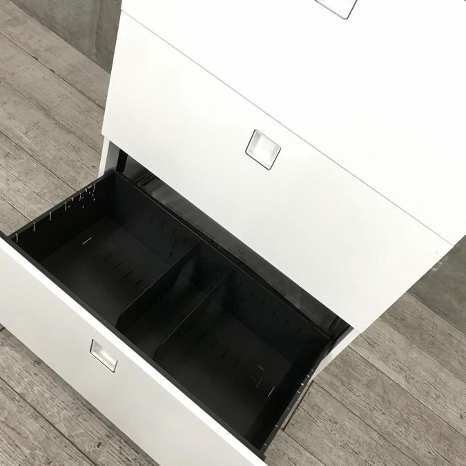 オフィスの必需品!書類をスッキリ整理できる容量の3段キャビネット取っ手がどの方向からでも開くマルチハンドル! ■オカムラ/レクトライン(Rectline)/ホワイト