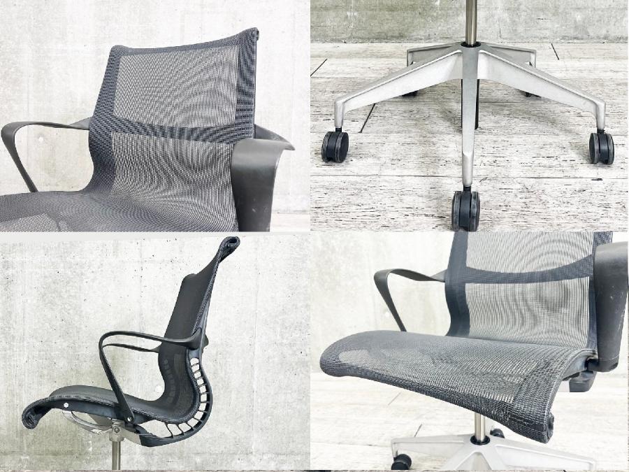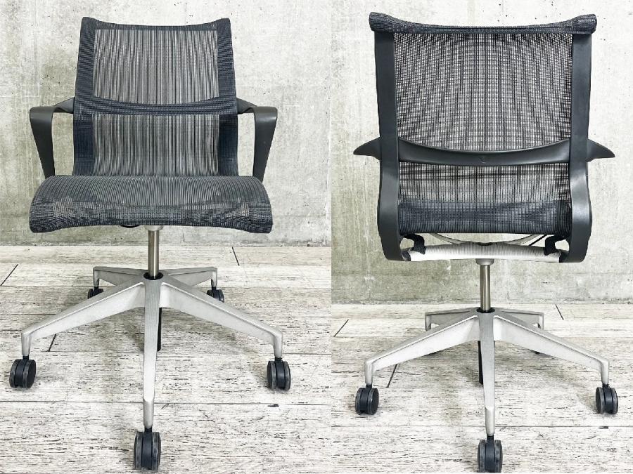 D)ハーマンミラー Setu / セトゥ チェア グラファイト アーム付き 新品定価11万 ウレタンキャスター仕様- デザイナーズ家具センター