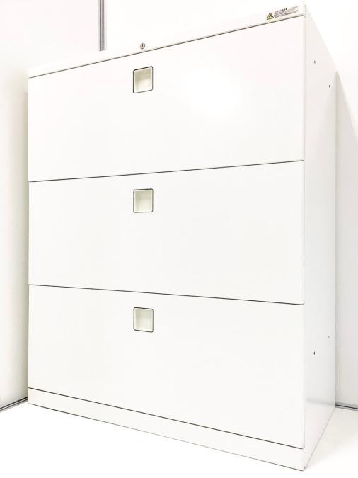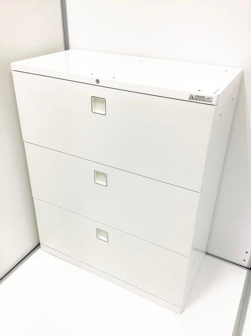 【ファイル収納にオススメ!高品質で使いやすい人気シリーズの3段ラテラル書庫!】■オカムラ(okamura)製 レクトラインシリーズ 3段ラテラル書庫 ローキャビネット H1100㎜ ■ホワイト ■シリンダー鍵 ■天板付き(天板:ホワイト) ※日焼け有