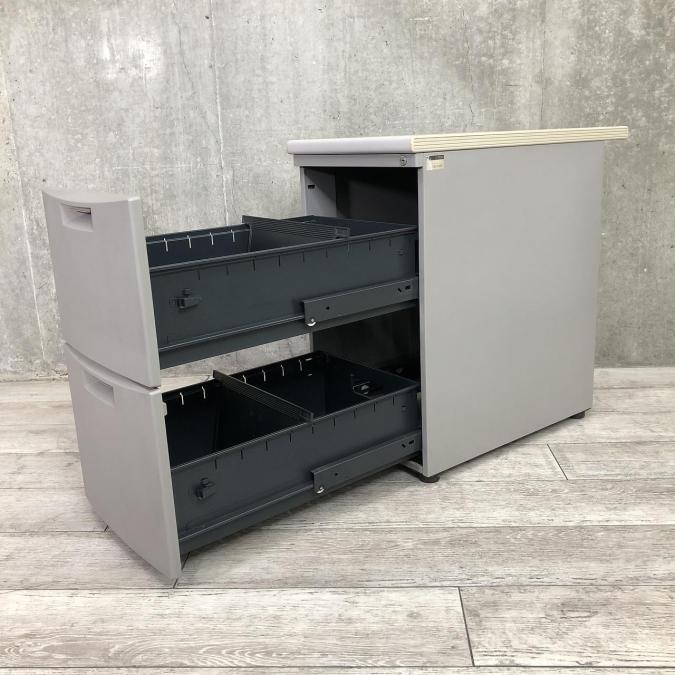 ★【日焼け・スレあり】イトーキ製 CZN グレー W400×D700xH700サイズ シリンダー デスク横に置いて収納と作業スペースを同時に確保! ファイル収納に強い2段タイプ! 2段脇机!!