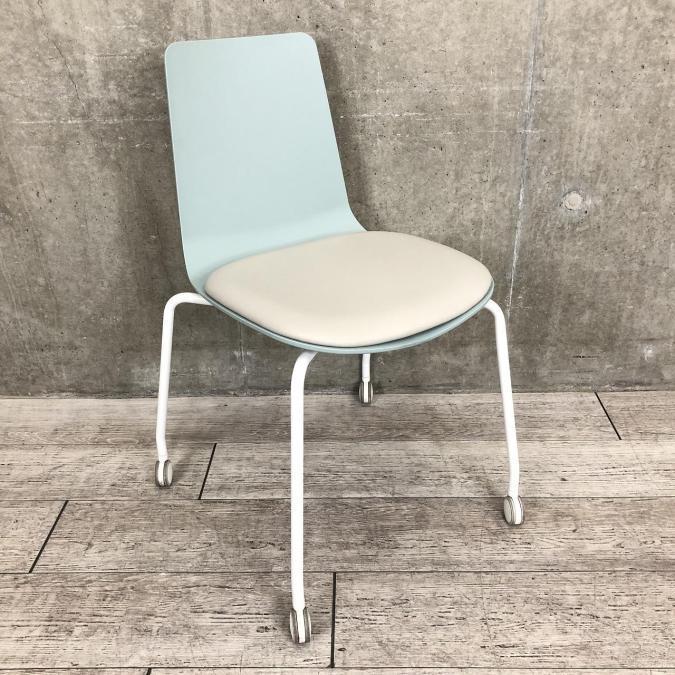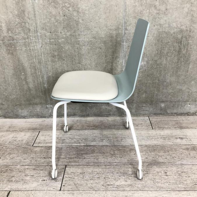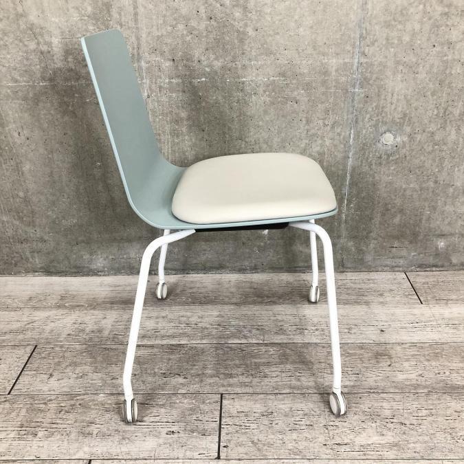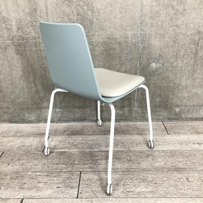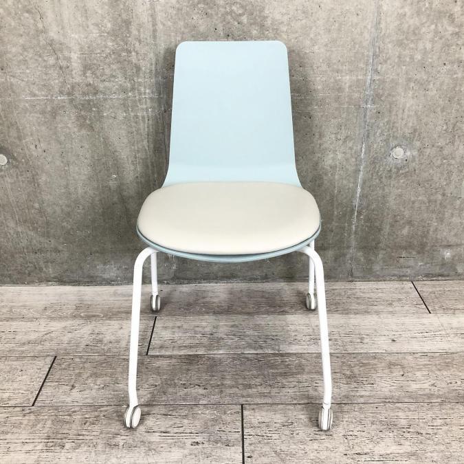 リフレッシュスペースにおすすめ!淡く爽やかな雰囲気を醸し出すカフェチェア!重ねて収納可能!キャスター付き ■コクヨ/ミケット(Mycket)/背:ホワイトターコイズ/座:ブライトグレー/フレーム:ホワイト- 足立・葛飾店