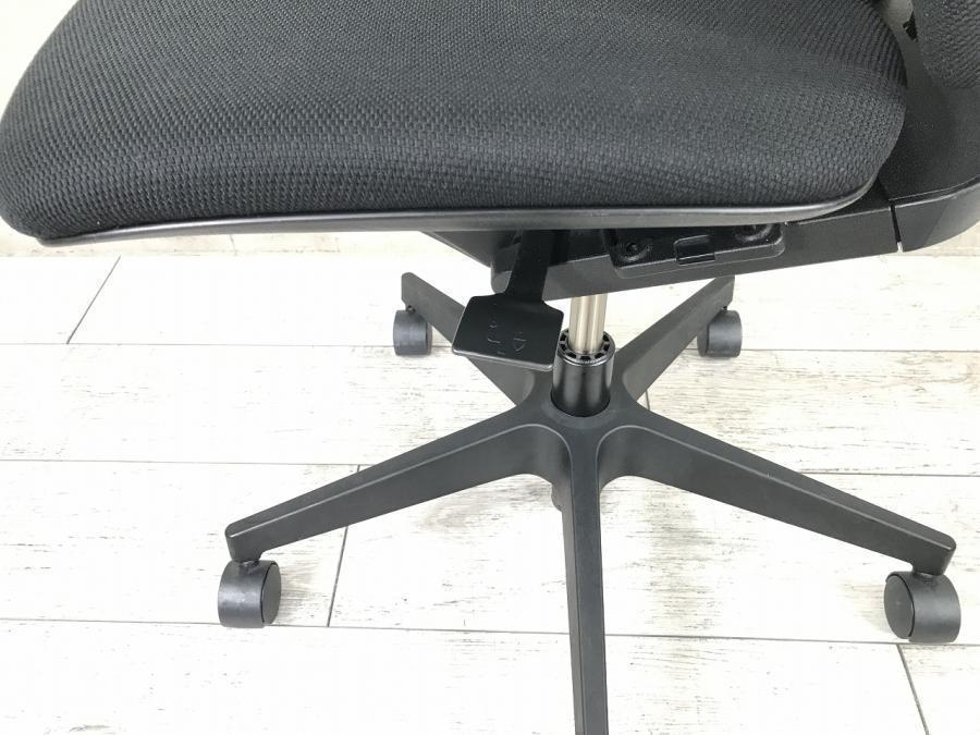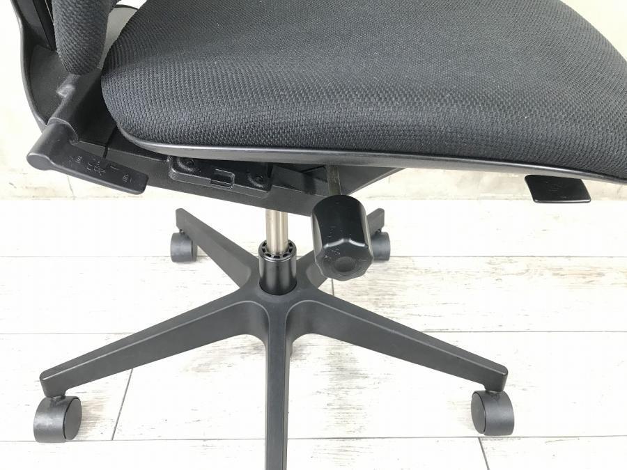 例えば、座面は、イトーキ独自の"ベンディングシート"という機構により、クッション、インターシェル、空洞という三層構造になっています。 この真ん中に挟まっているインナーシェルが、着座時の姿勢に合わせて体重を分散してくれるので、どんな姿勢でも体になじみ、疲労を軽減してくれます。 さらに、座面は前後に4センチほど奥行きを調整でき、前傾姿勢で座りたい、深く腰掛けたい、膝裏を圧迫されたくないなど、個人の好みに合った快適さにカスタマイズが可能となっています。