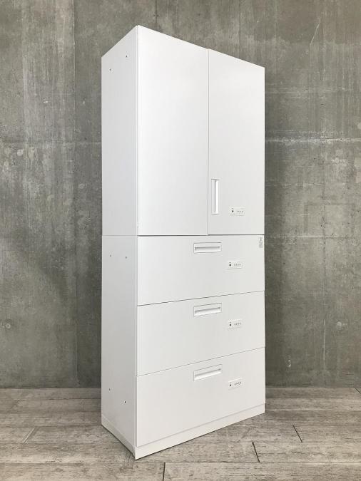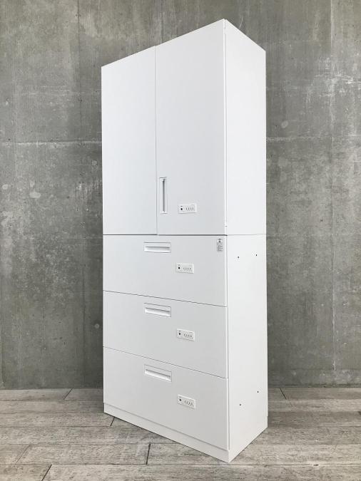 定番シリーズがダイヤル錠タイプで入荷!鍵の紛失の心配を払拭!収納量抜群!観音開き+引き出しタイプのキャビネットセット! ■コクヨ/エディア/ホワイト- 立川・八王子店
