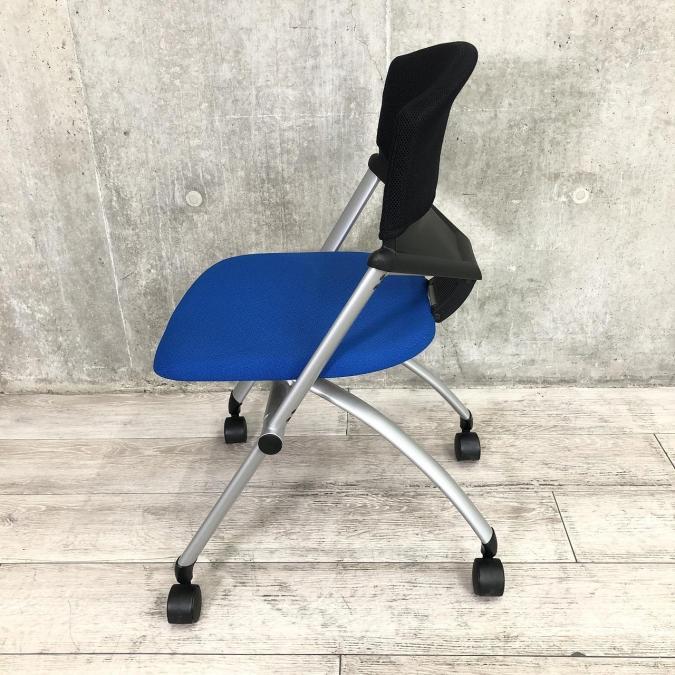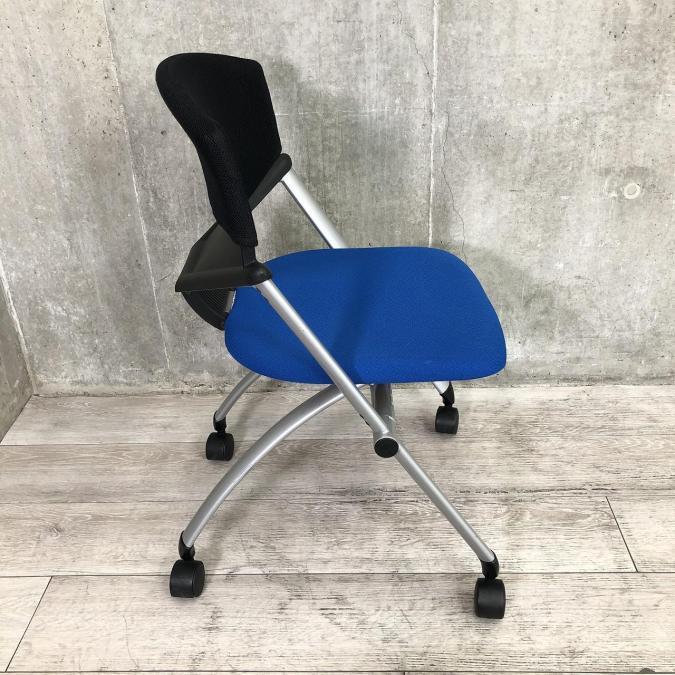 【在庫入替セール】会議室や商談スペースに ■KOKUYO コルサ ミーティングチェア ネスティング ■ブルー座面 ブラック背面【キャスター付きで移動らくらく!】【T5】- 在庫数