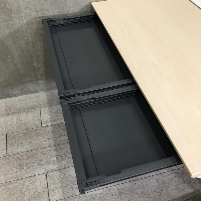 引き出しには小物の収納やノートPCも入れることが可能でございます。