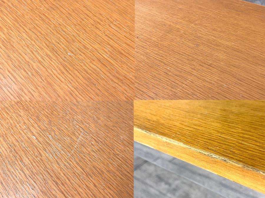 - 目立つ箇所あり傷・凹みが多数、深い傷・凹みが一部ある。(例、天板、幕板、棚板、サイド部分、脚部等にある。)
