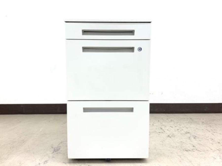 【A00992420】【収納力抜群の3段ワゴン!中段と下段にはA4サイズのファイル等が収納できるサイズ!】■イトーキ製 CZR 3段ワゴン フリアド用ワゴン H650㎜ ■1段目浅型 ■ホワイト ■シリンダー錠【IB】