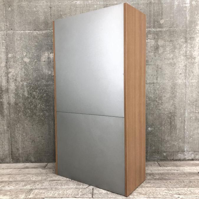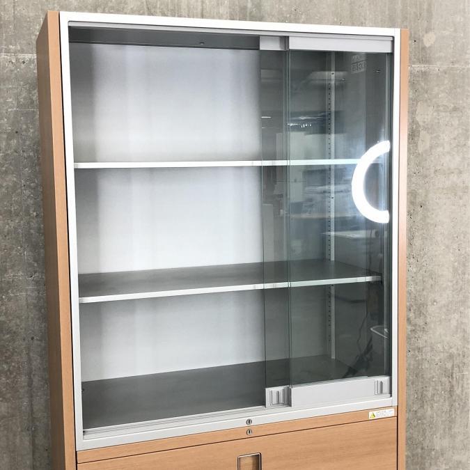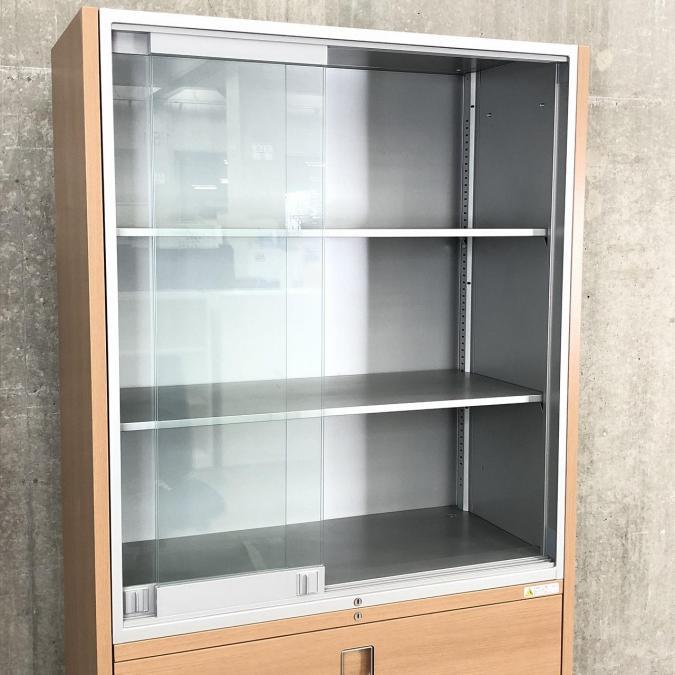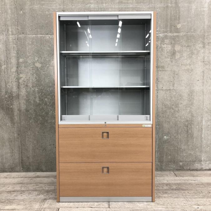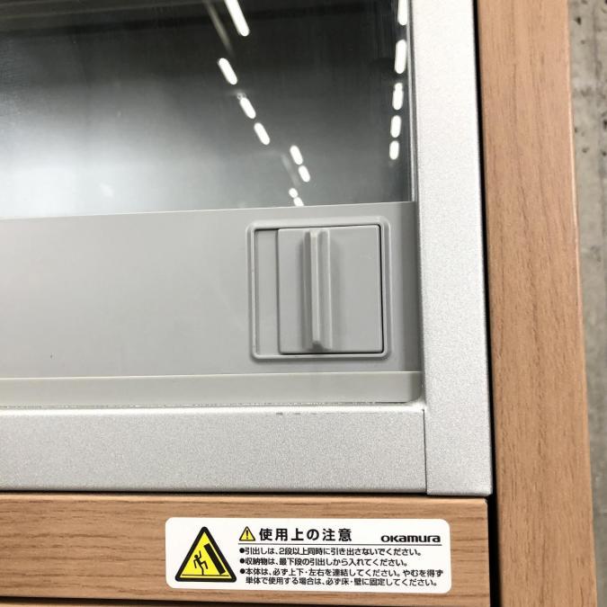 【1台限定】珍しいガラス引き戸とラテラルのハイキャビネットが入荷しました!木目柄とシルバーの組み合わせがオシャレ!■オカムラ(okamura)ハイキャビネット レクトライン ウッドタイプシリーズ ■ガラス戸3枚引き違い+2段ラテラル ■木目柄- 在庫数
