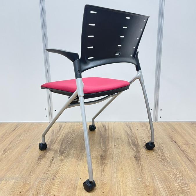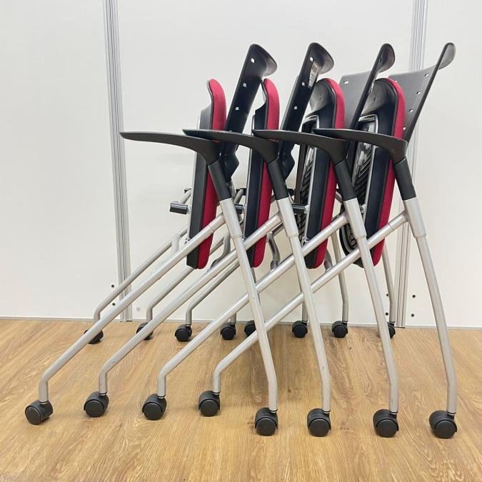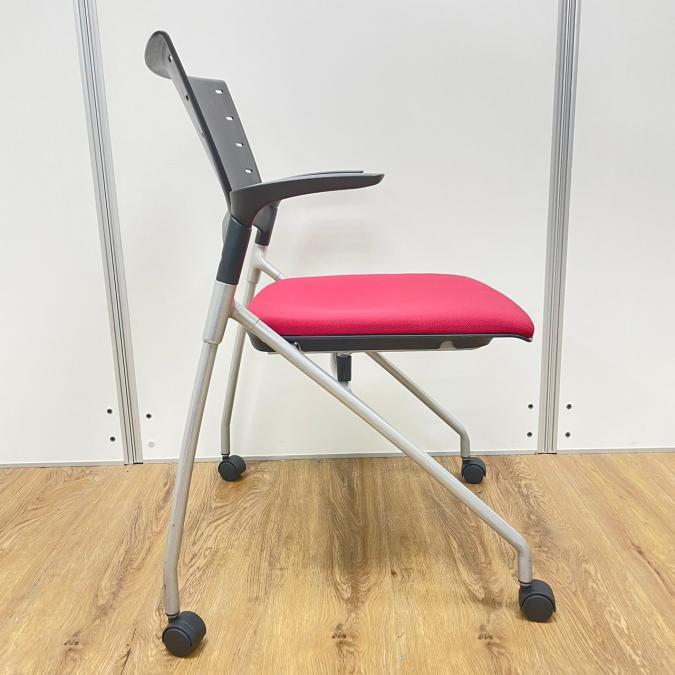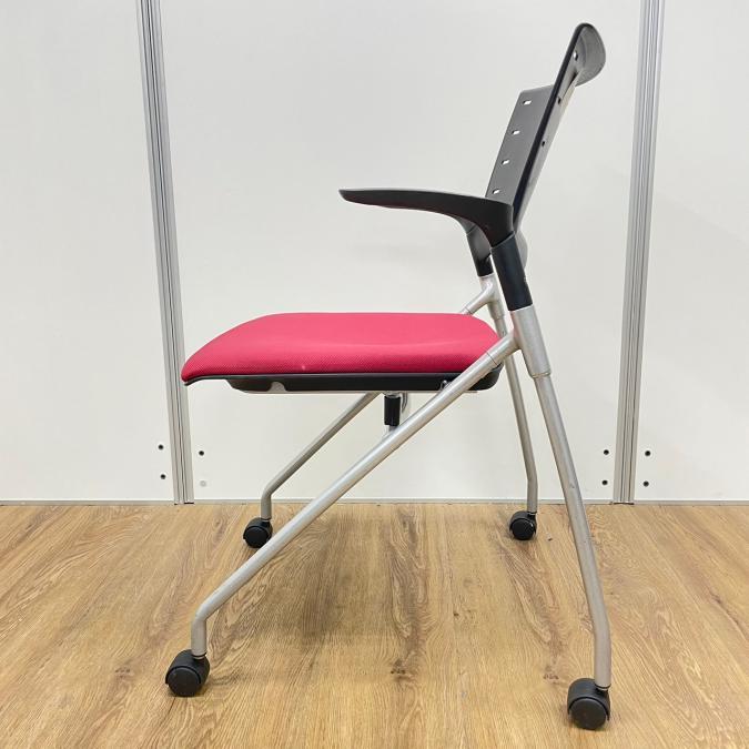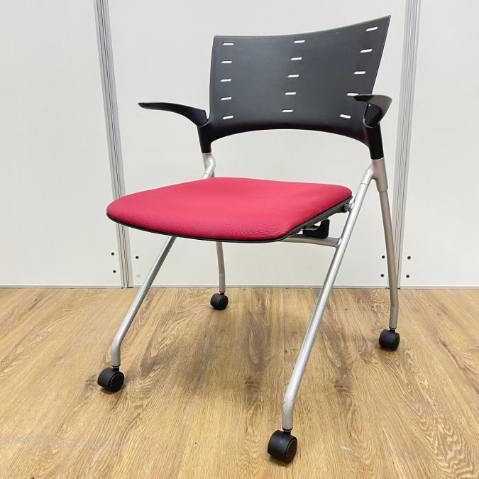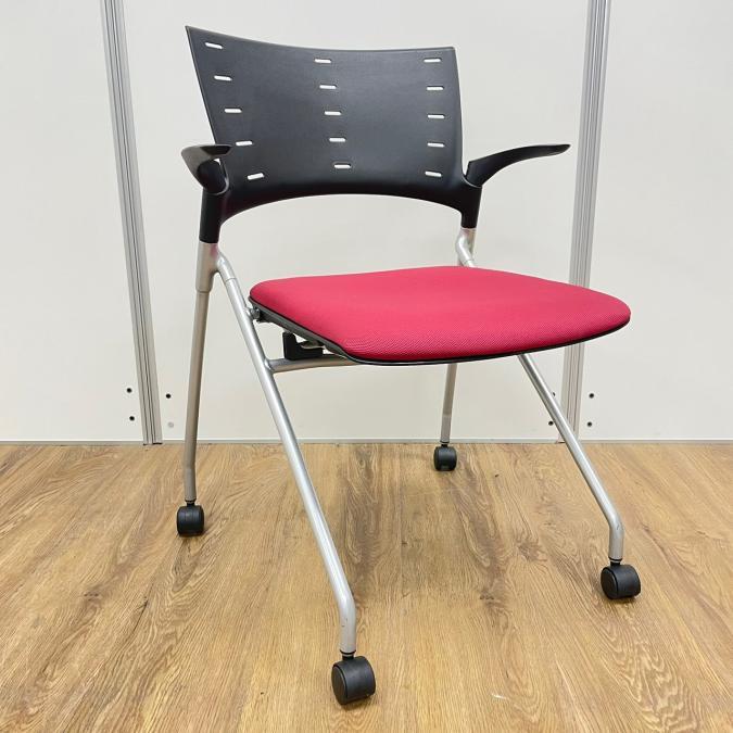 【在庫入替セール】イトーキ製 マノスシリーズ 座面レッドカラー 肘付き ネスティングチェア- 名古屋千種店