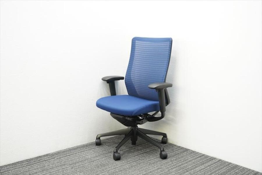 シンプルでオシャレなスタイリングのチェア! オカムラ コーラル ブルー 可動肘【地方倉庫在庫】【TI】- 神戸・三宮店