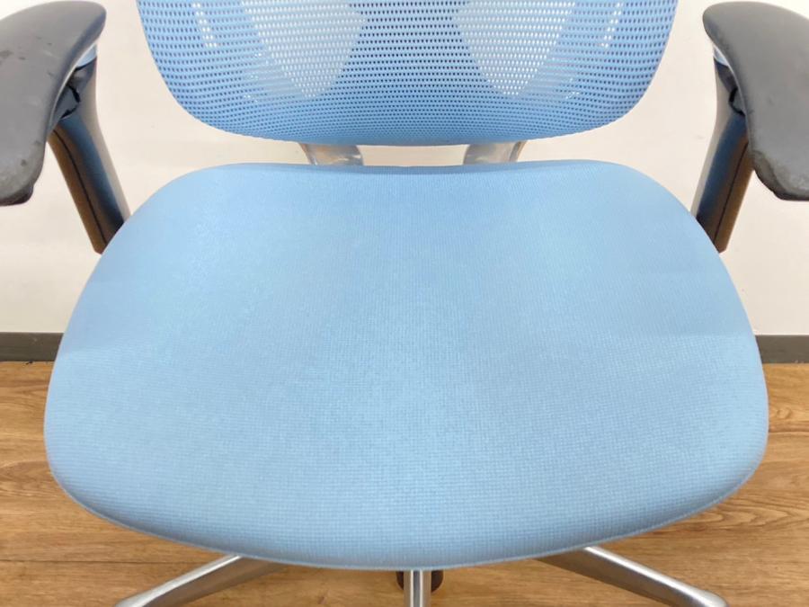 【ジャンク品特価!座面上下昇降ガス圧弱め・肘パット擦れ傷の訳あり品】オカムラ コンテッサ (Contessa) ライトブルー 座面クッション 【日本を代表する高級チェア】 ※補償対象外商品- つくば店