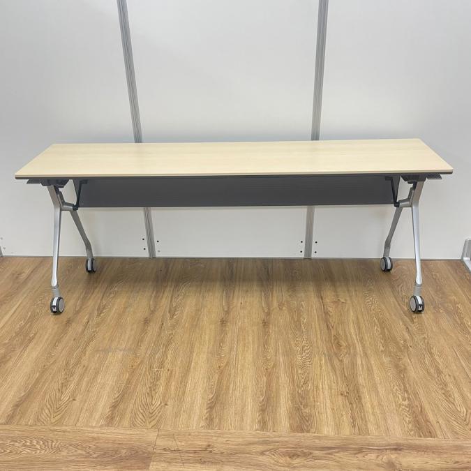 【商品入れ替えのため、残り2台限り】オカムラ製 インターアクトシリーズ W1800 ナチュラル天板 幕板付き キャスター サイドスタックテーブル!!- 京都東寺店