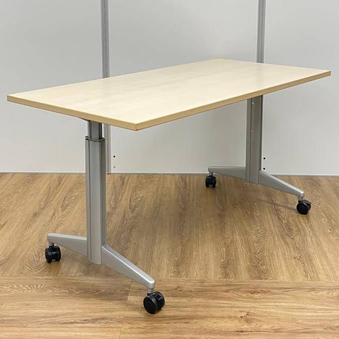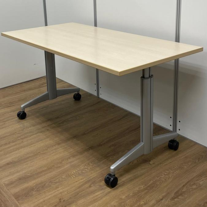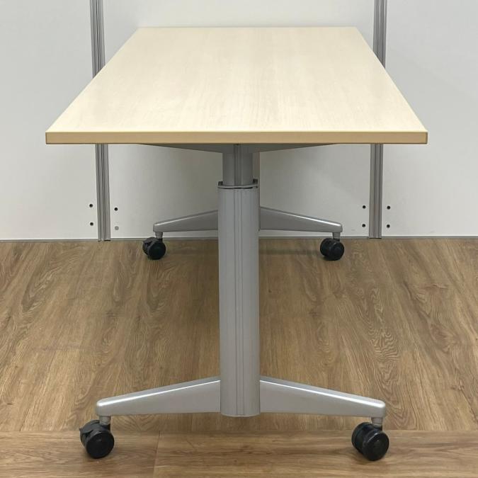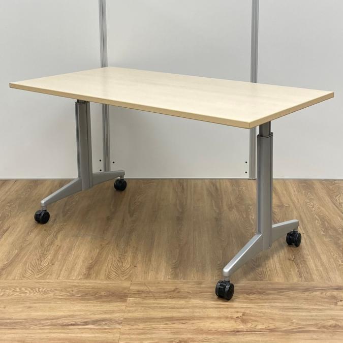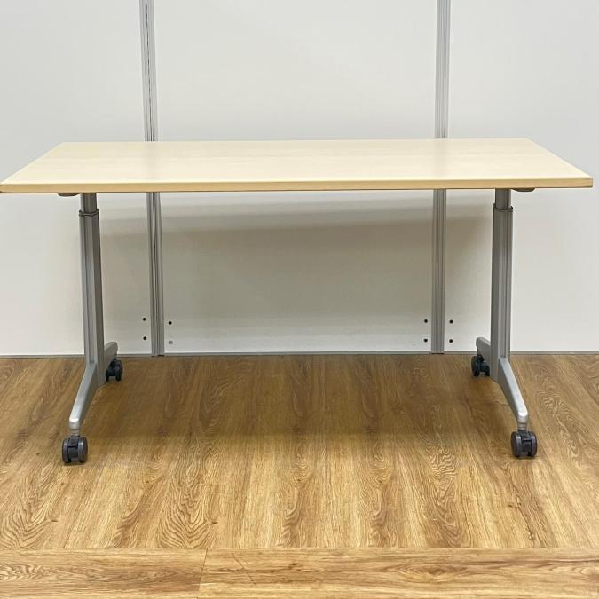【商品入替のため、残り1台限り】【訳あり品:天板カッターキズあり】ナチュラルカラー W1400 キャスター付き ミーティングテーブル!!- 京都東寺店