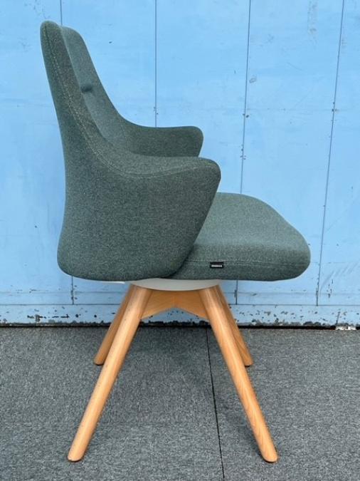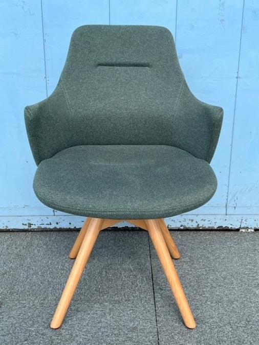 【感性を刺激するデザイン!】■オカムラ ライブス ミーティングチェア 肘付 ダークグリーン 木製脚【Okamura Lives Work Chair】【ABW】 ★